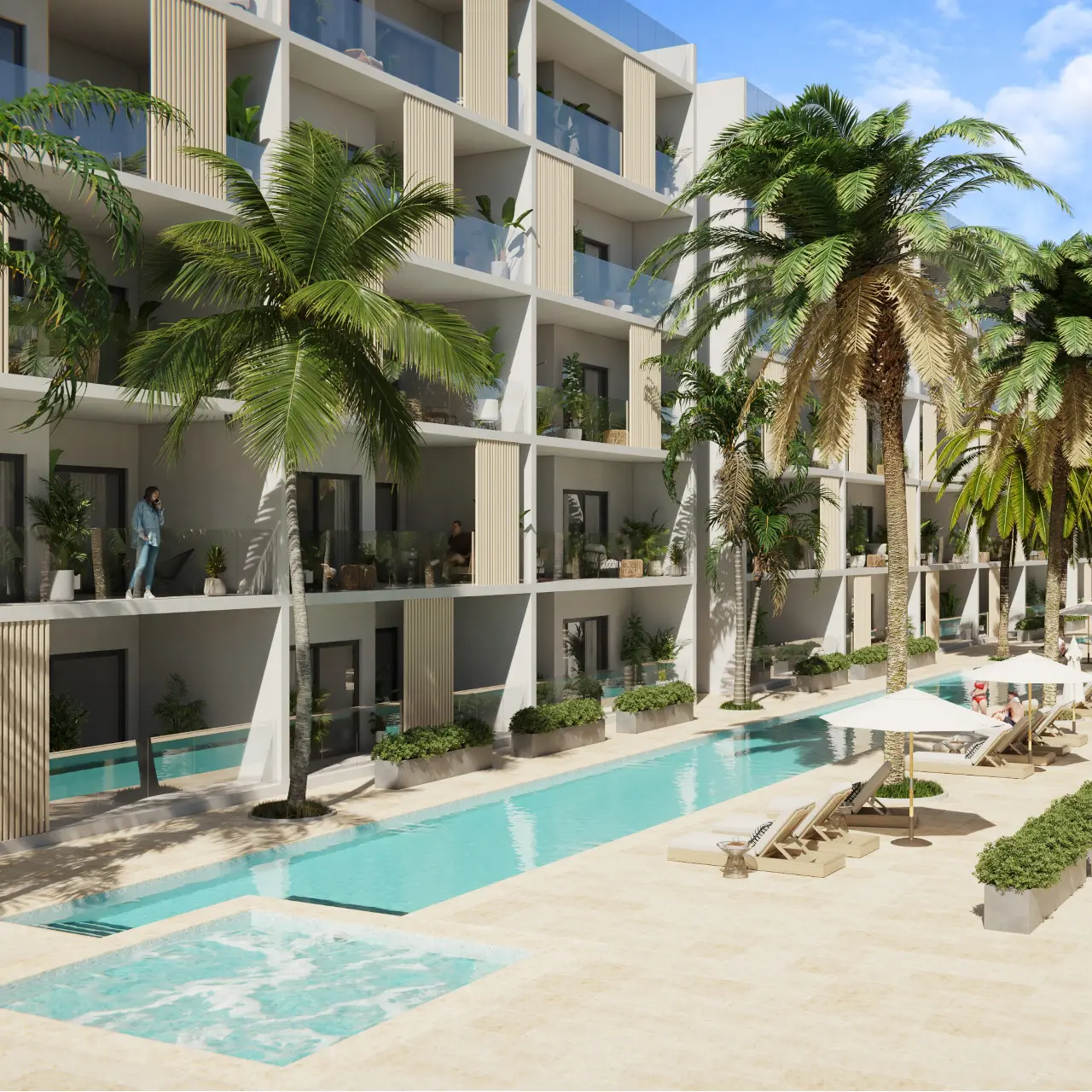 Przedstawiamy kolejny projekt w nowej części popularnego osiedla El Cortecito. Znajduje się w popularnej dla turystów dzielnicy – El Cortecito. Zaledwie 12 minut od kompleksu znajduje się malownicza plaża Bavaro.