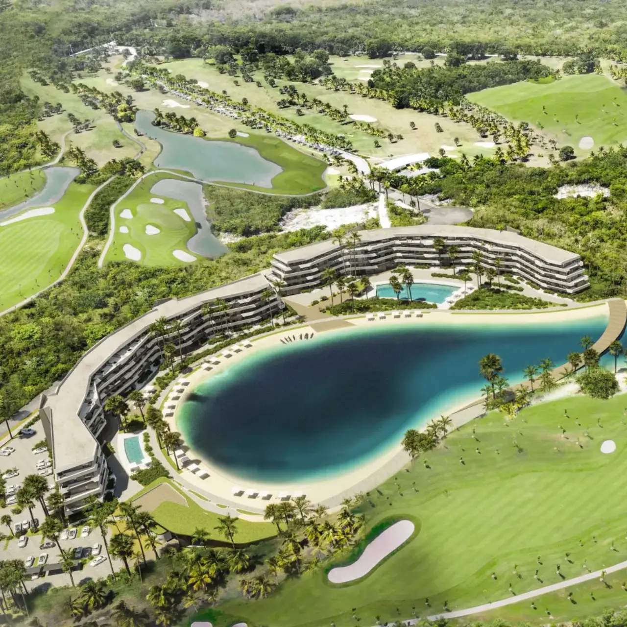 Apartament przy lagunie i oceanie – 3BR, Cabeza de Toro. Wreszcie możemy przedstawić Wam najnowszy projekt w okolicy Punta Cana, a dokładniej w regionie Cabeza de Toro. To będzie pierwsza taka inwestycja realizowana w tym regionie. Niektórzy z Was mogą kojarzyć to miejsce z Laguny Bavaro znajdującej się nieopodal. Kompleks apartamentów powstanie na polu golfowym zaledwie 5 minut samochodem od plaży. Nie jest to problem, ponieważ deweloper zadba o transport na poblisku Beach Club, który będzie dostępny dla właścicieli apartamentów. Do lotniska w Punta Cana dojedziemy w 15 minut, co jest ogromną zaletą.