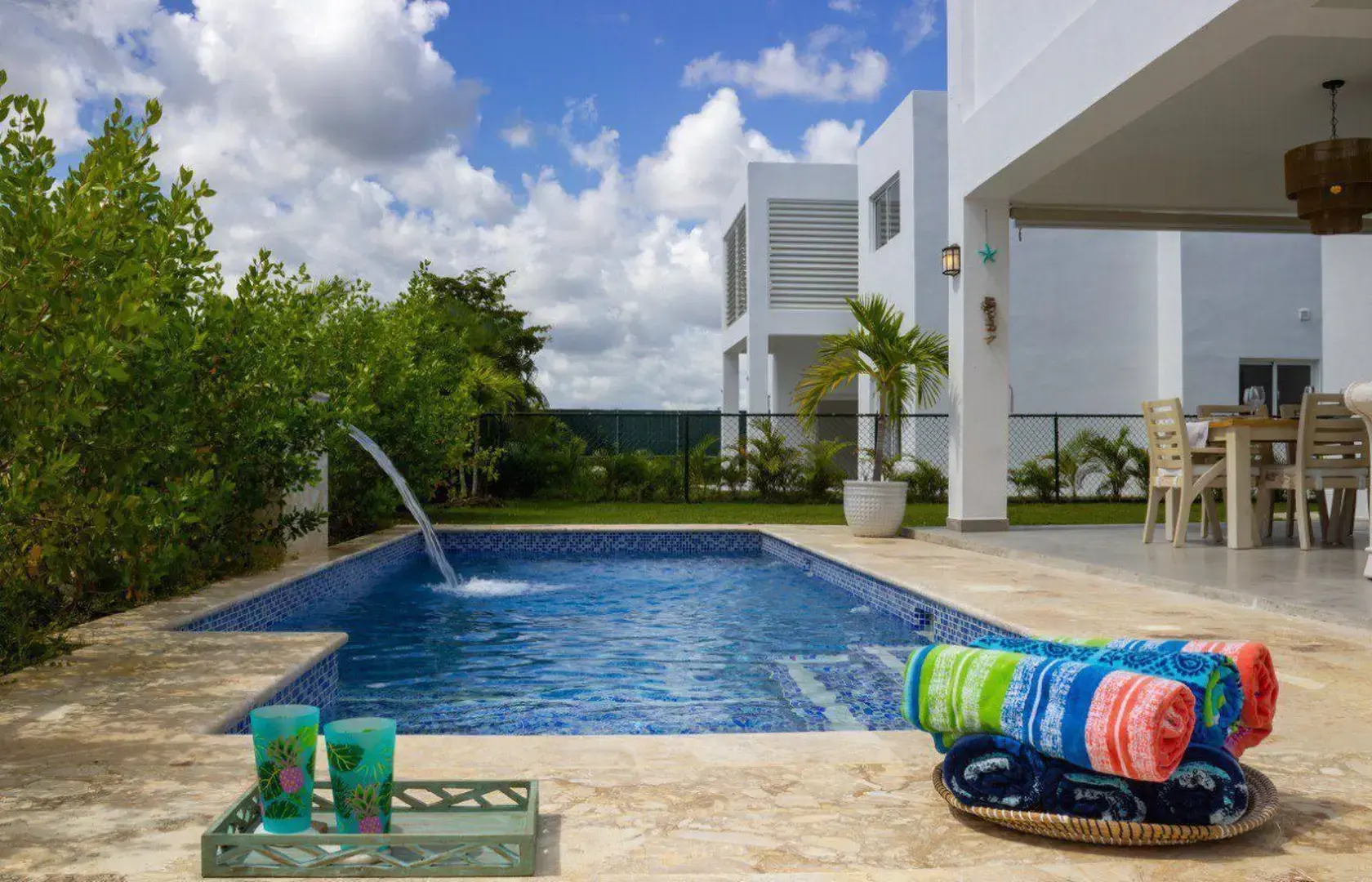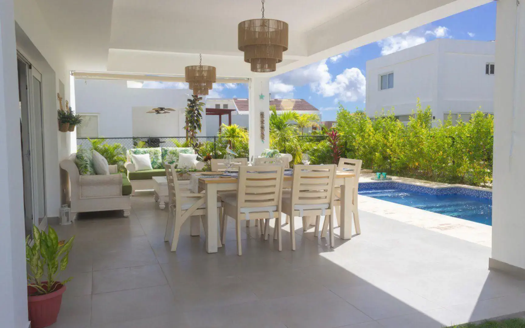 Ta w pełni wyposażona willa znajduje się w jednej z najbardziej prestiżowych zamkniętych osiedli Bavaro. Jest położona niedaleko sztucznej plaży z jeziorem, która oferuje dostęp do bogatej infrastruktury rekreacyjnej. W okolicy działają restauracje, klub klubowy, bary, strefy sportów wodnych, sale eventowe, place zabaw oraz jezioro z możliwością wędkowania.
