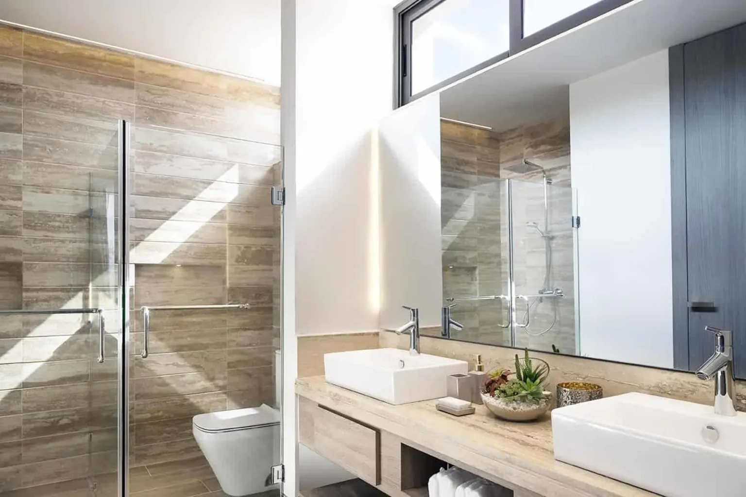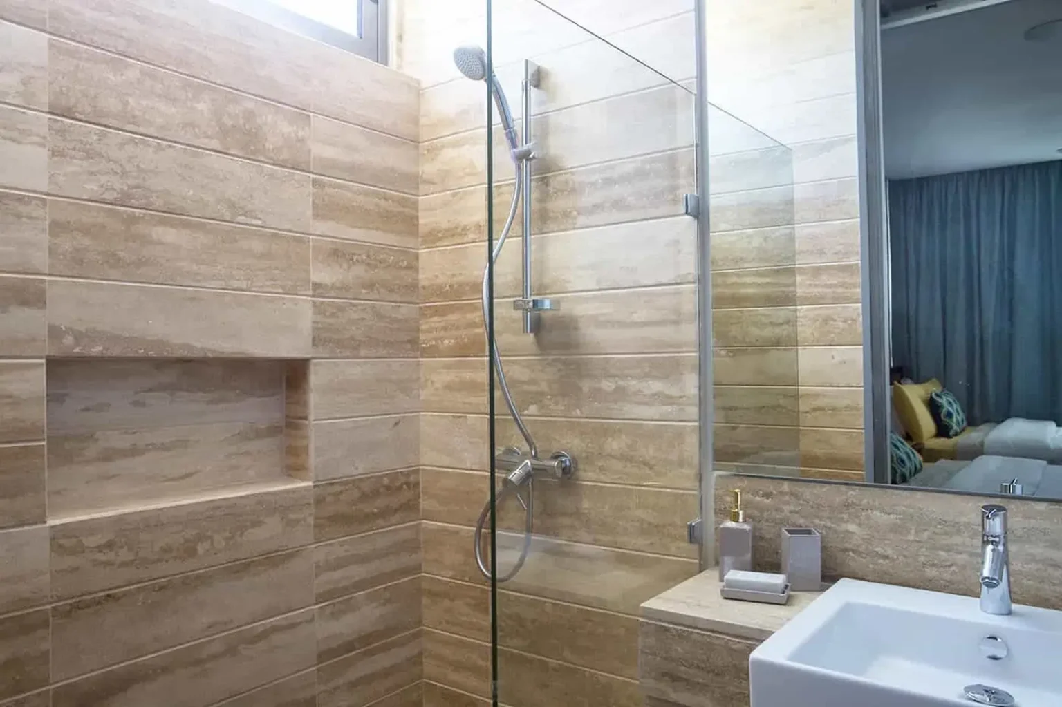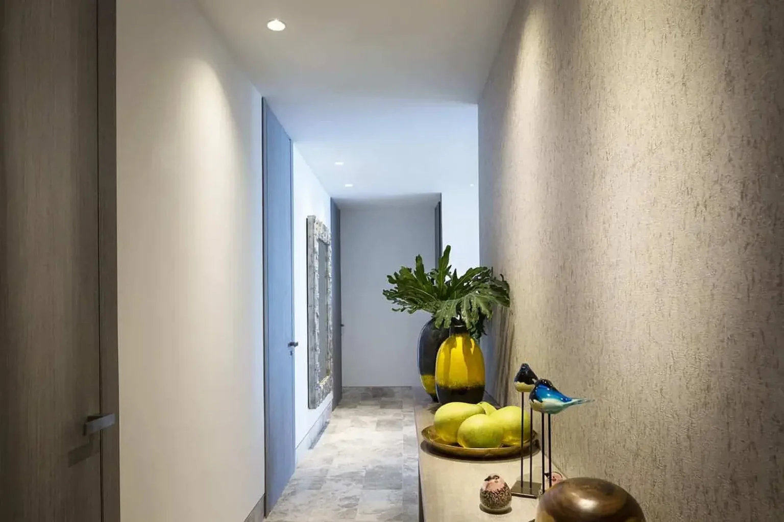 - łazienki z marmurowymi i porcelanowymi podłogami,