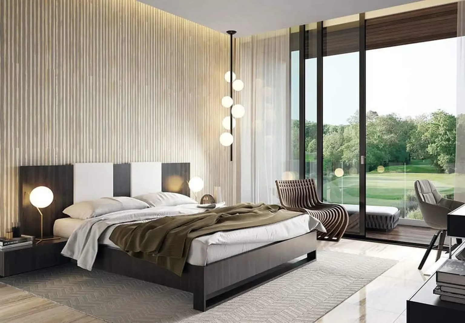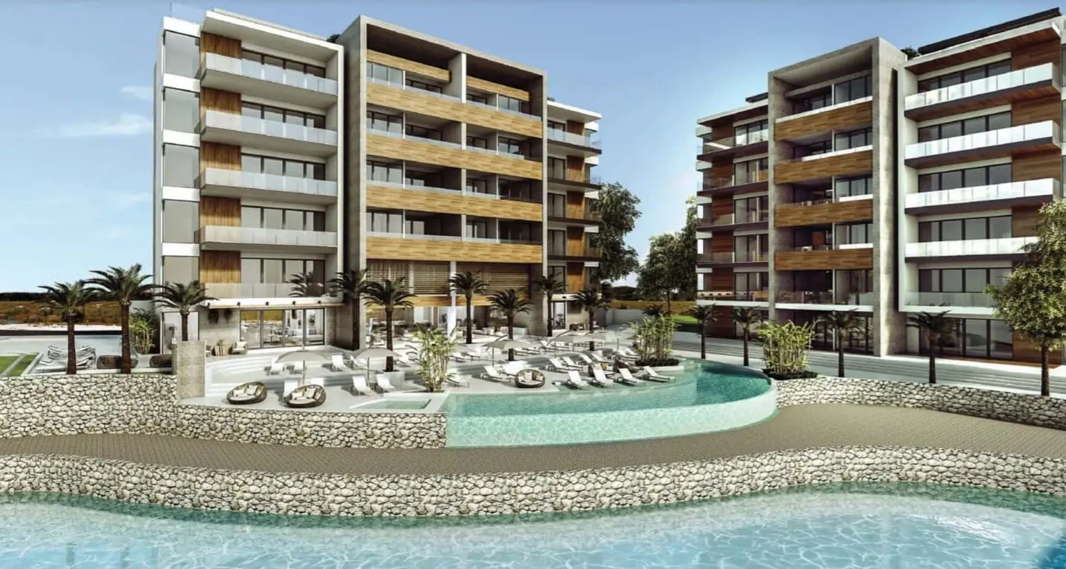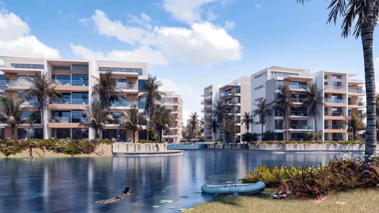 Apartamenty są rozlokowane wokół jeziora z wykorzystaniem naturalnej niwelacji terenu, tworząc spektakularne, panoramiczne widoki. Nasze przestrzenie, wykończone szkłem i niesamowitymi elementami, dają poczucie integracji z naturą i pozwalają na spektakularne widoki na jezioro i otaczającą roślinność.