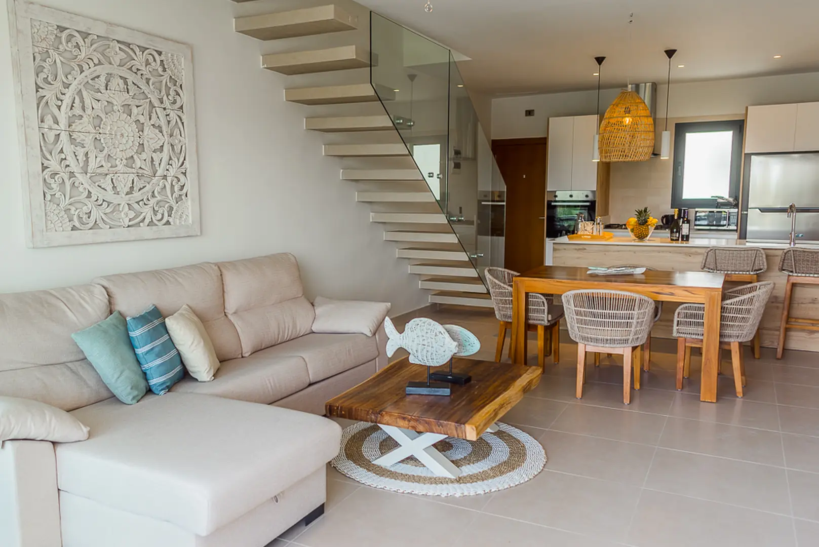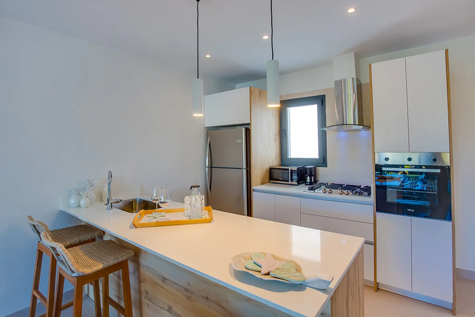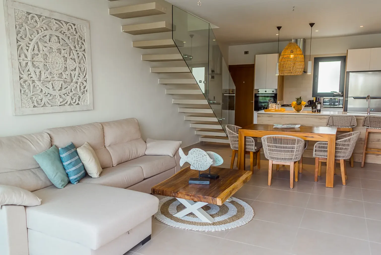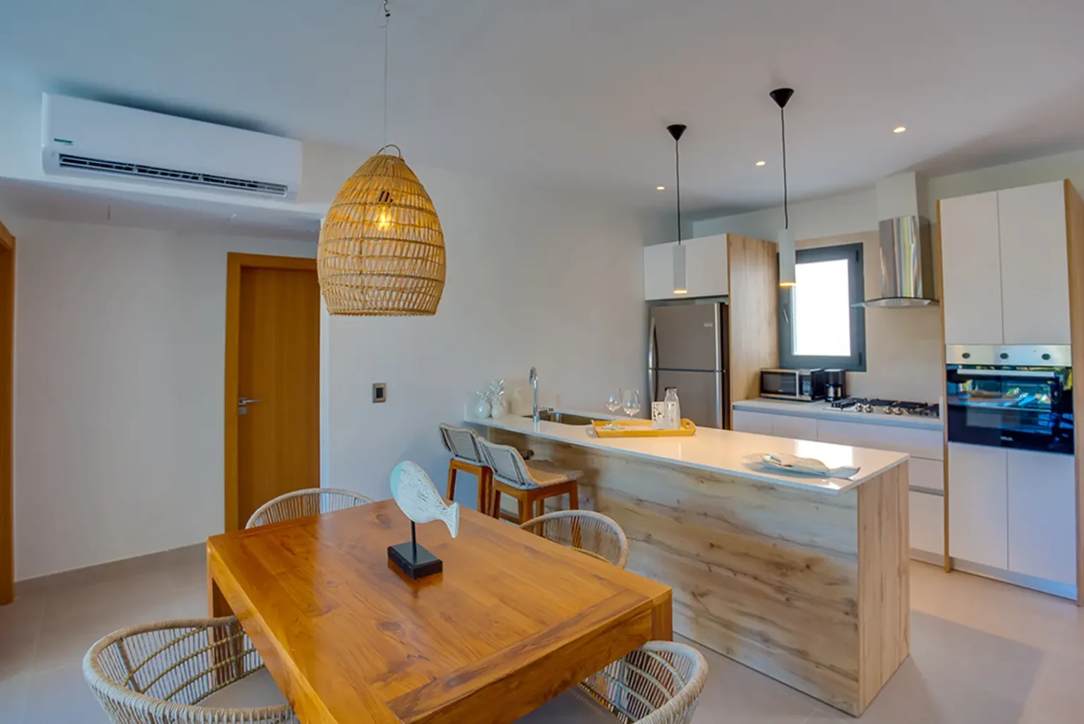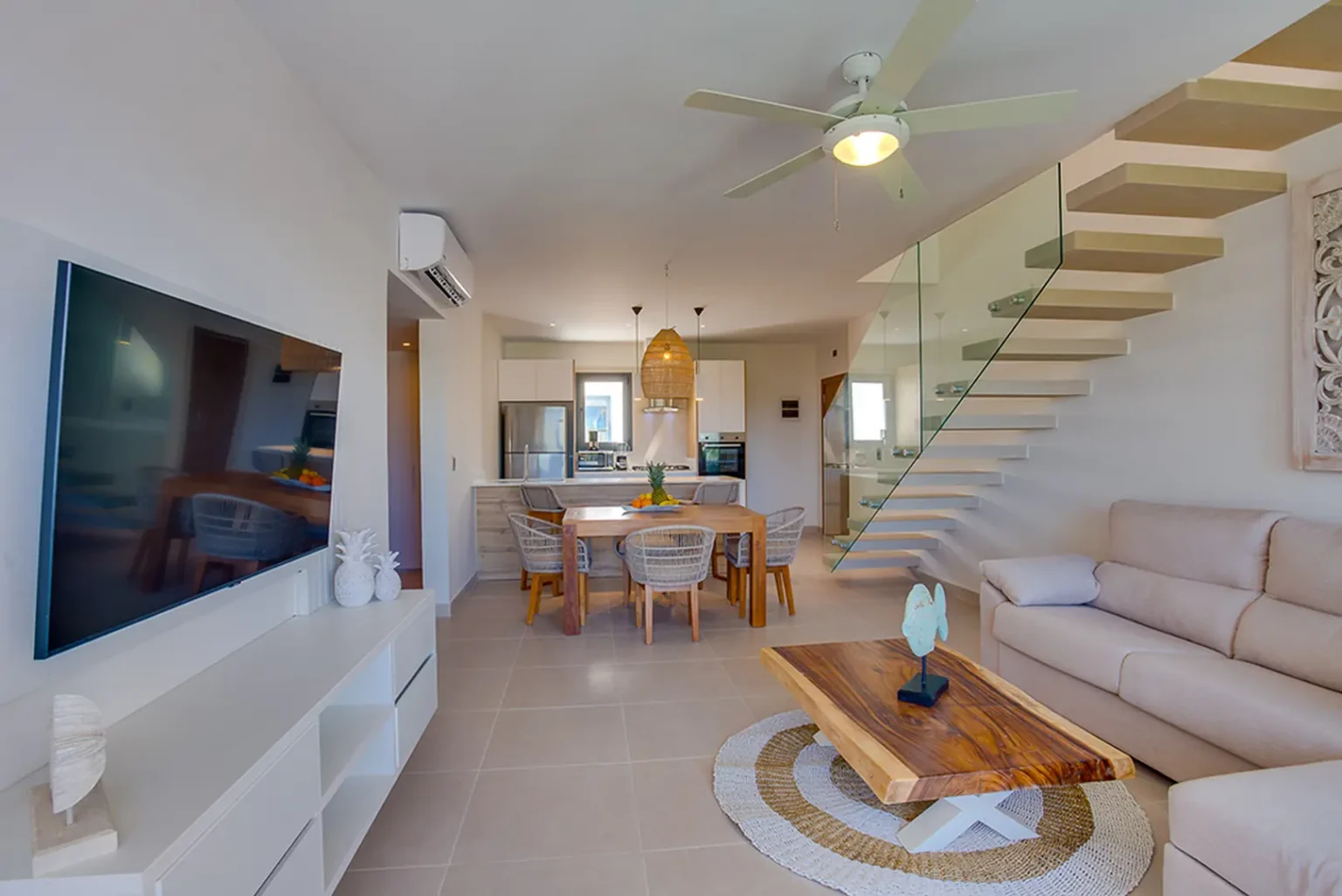 Apartament jest przestronny i dobrze oświetlony. Wykończenie apartamentu jest na bardzo wysokim poziomie. Część mebli została sprowadzona z Hiszpanii. Wszystkie sypialnie oraz salon jest klimatyzowany. Na drugim piętrze jest sypialnia oraz wyjście na przestronny taras. Znajduje się na nim picuzzi. Z tarasu rozciąga się panoramiczny widok na Bavaro.
