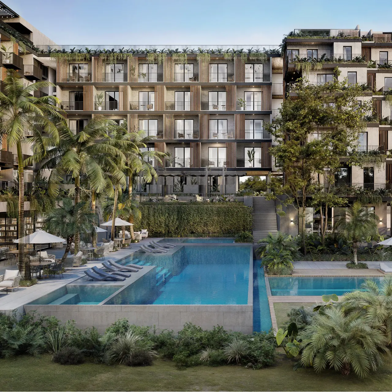 Wszystkie apartamenty są w pełni umeblowane i wyposażone meblami wysokiej jakości. Do wyboru są apartamenty z jedną, dwoma i trzema sypialniami o różnych rozkładach. Do każdego apartamentu zostanie przypisane miejsce parkingowe. Oprócz tego właściciele apartamentów mają dostęp do plaży. Mają również możliwość wykupienia członkostwa w osiedlowym klubie plażowym.